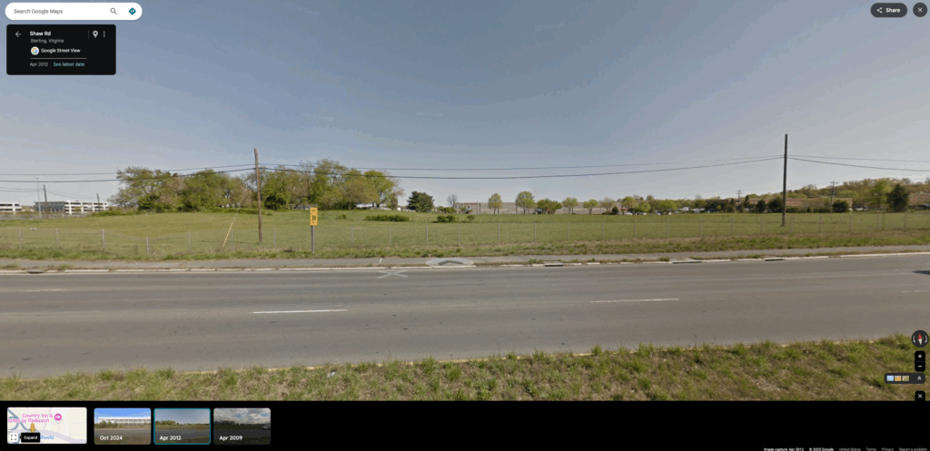 Around 2016, the green field was reduced to make space for a truck parking lot. It was like that for a few years and then very quickly a data center was built.