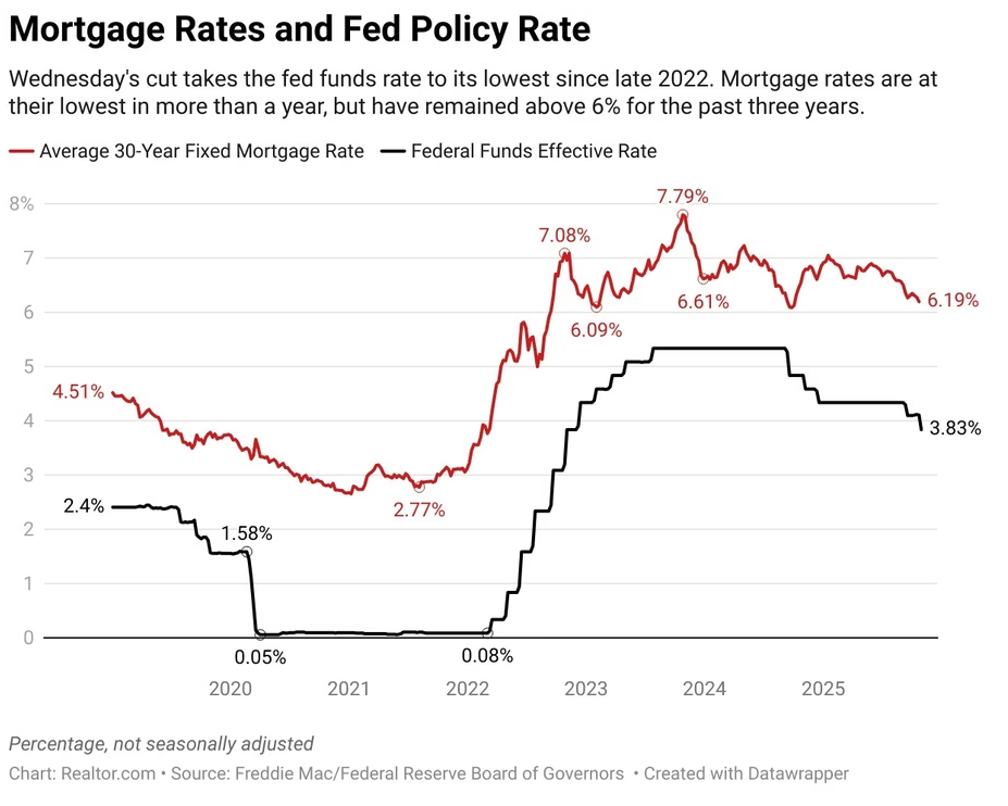 Wednesday’s (2025-10-29) decision takes the Fed’s overnight rate down to a range of 3.75% to 4%.